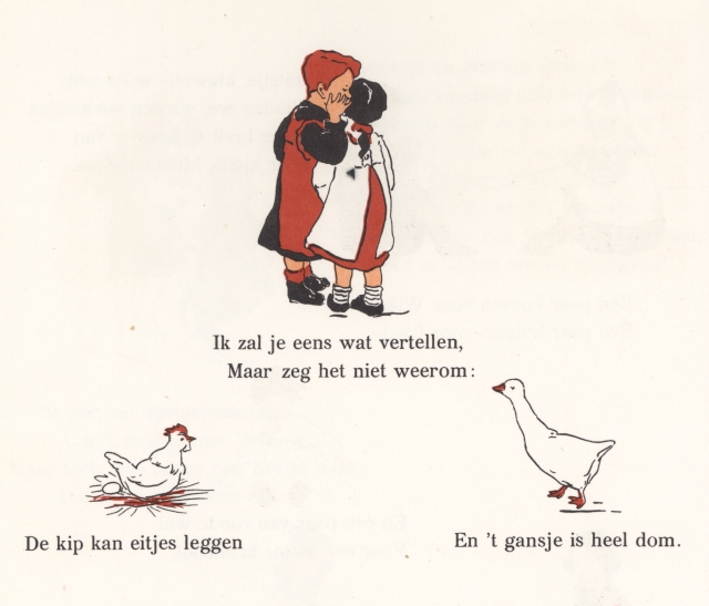 Op de laatste dag van januari van dit jaar waren we op de Boekenbeurs in de Bergkerk in Deventer, mijn boekenmaatje en ik. Toen zag ik dit boekwerkje op een kraam midden in de kerk liggen. Van jongetjes en meisjes stond op de voorkant,Van meisjes en jongetjes op de achterkant. Het is een keerboek. Uitgegeven bij Van Goor Zonen Den Haag, in 1906 dus. Tegenwoordig valt deze uitgeverij onder Uitgeverij Unieboek / Het Spectrum.